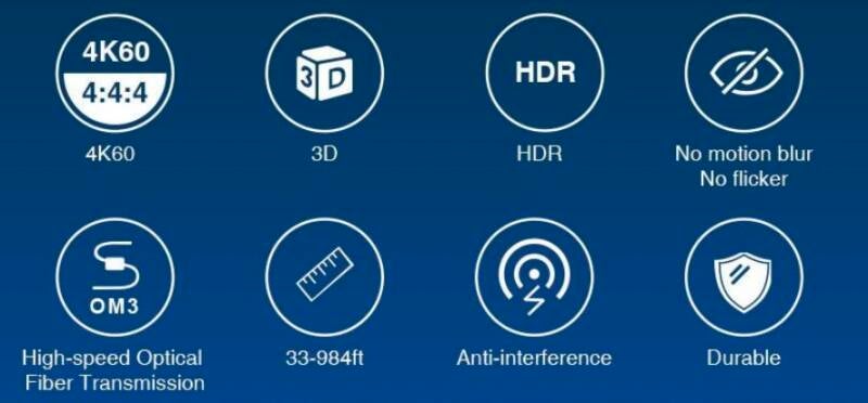 Ze maken gebruik van vergulde connectoren en OM3 hogesnelheidsglasvezelkabels, waardoor een betrouwbare en onberispelijke beeld- en geluidskwaliteit wordt gegarandeerd zonder signaalverlies of interferentie.